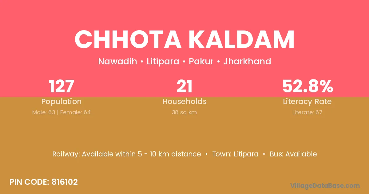 Chhota Kaldam village has a total population of 127 people, of which 63 are males and 64 are females.