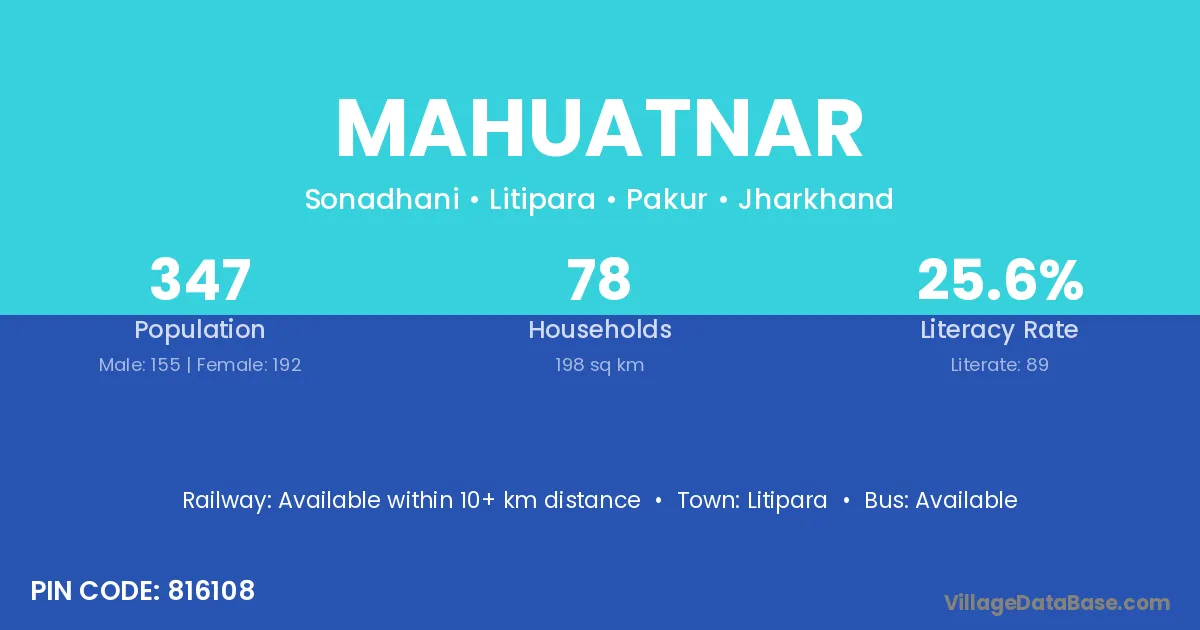 Mahuatnar village has a total population of 347 people, of which 155 are males and 192 are females.