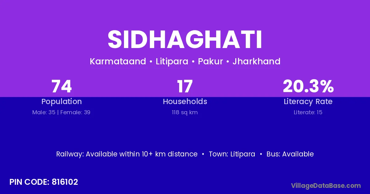 Sidhaghati village has a total population of 74 people, of which 35 are males and 39 are females.