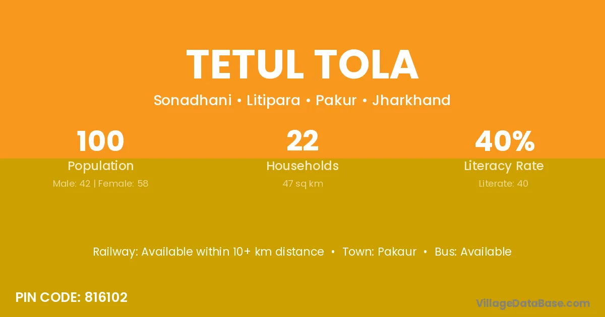Pakaur is the nearest town to Tetul Tola village for major economic activities
