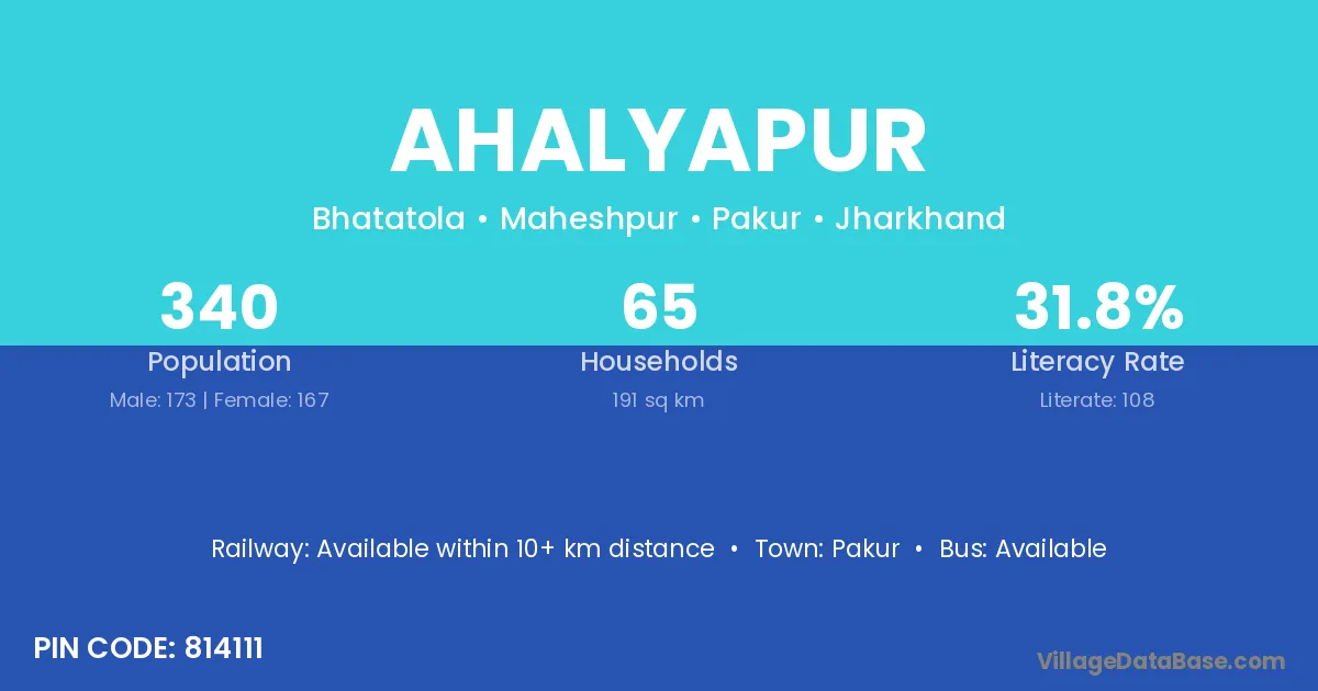 Pakur is the nearest town to Ahalyapur village for major economic activities