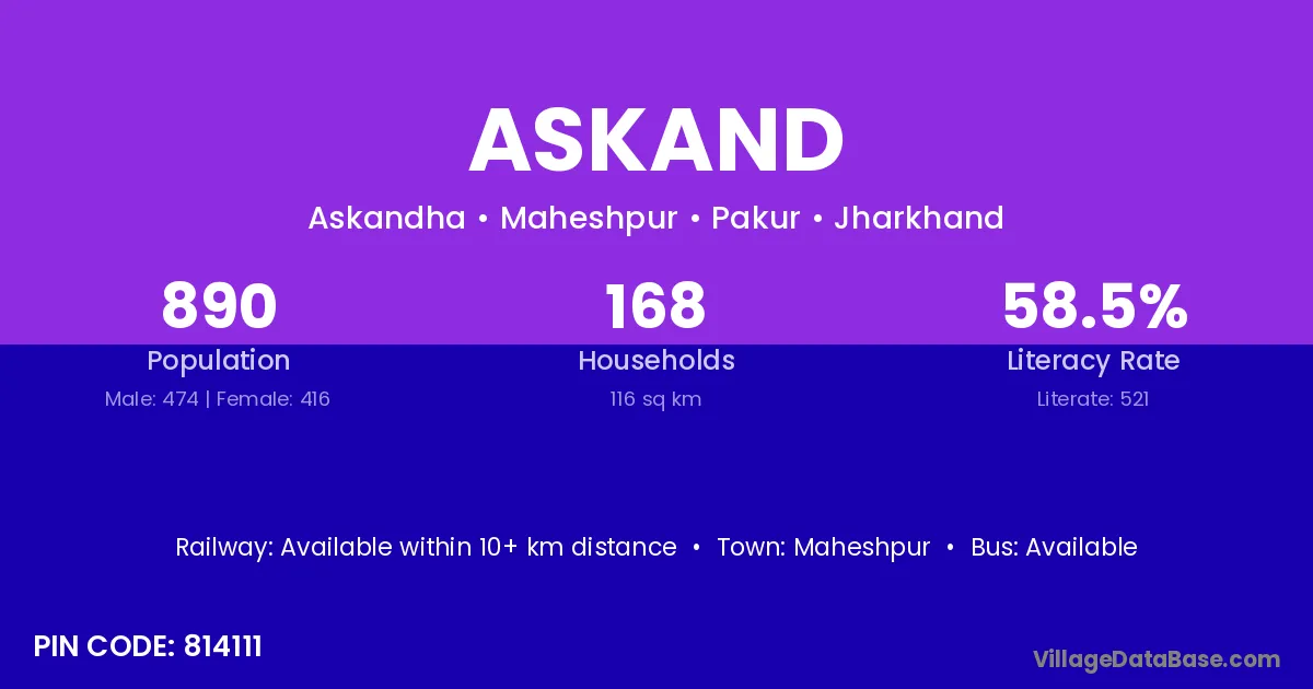 Askand village is located in the Maheshpur Subdivision of the Pakur district in Jharkhand .