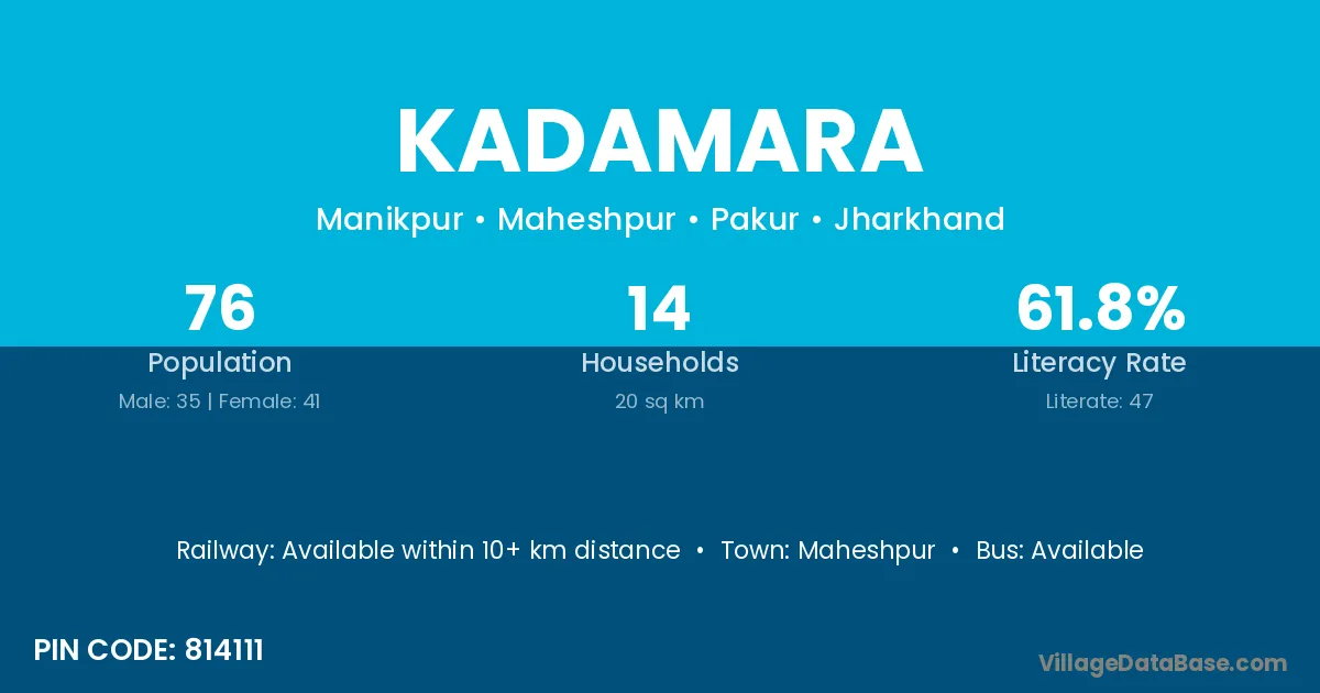 Kadamara village has a total population of 76 people, of which 35 are males and 41 are females.