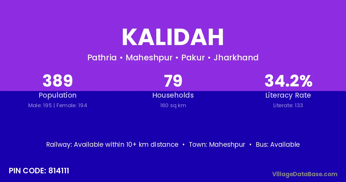 Maheshpur is the nearest town to Kalidah village for major economic activities