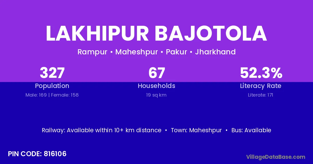 Lakhipur Bajotola village has a total population of 327 people, of which 169 are males and 158 are females.