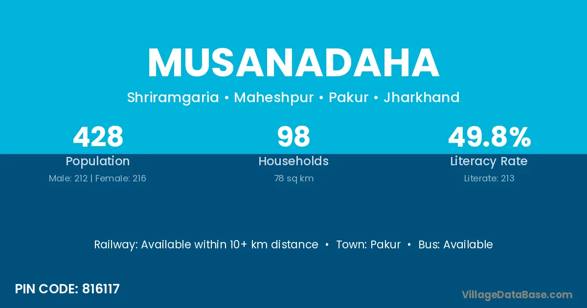 Musanadaha village has a total population of 428 people, of which 212 are males and 216 are females.