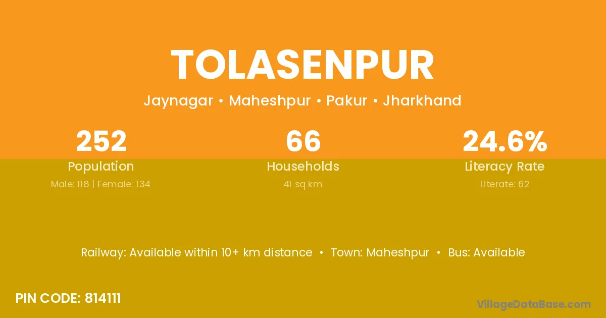 Maheshpur is the nearest town to Tolasenpur village for major economic activities