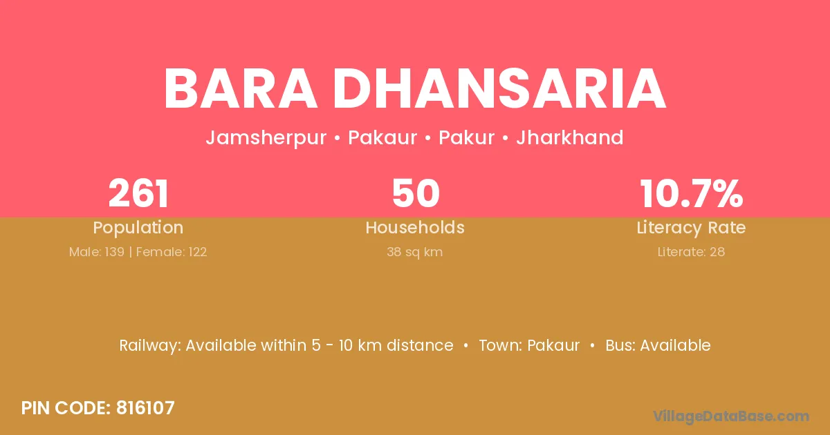 Pakaur is the nearest town to Bara Dhansaria village for major economic activities