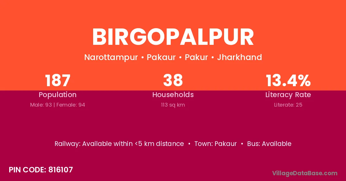 Pakaur is the nearest town to Birgopalpur village for major economic activities