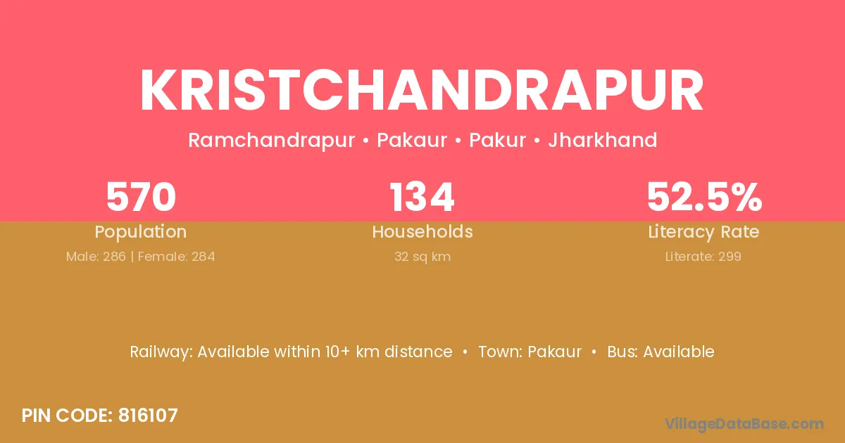 Pakaur is the nearest town to Kristchandrapur village for major economic activities