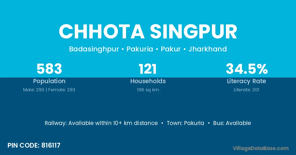 Chhota Singpur village has a total population of 583 people, of which 290 are males and 293 are females.