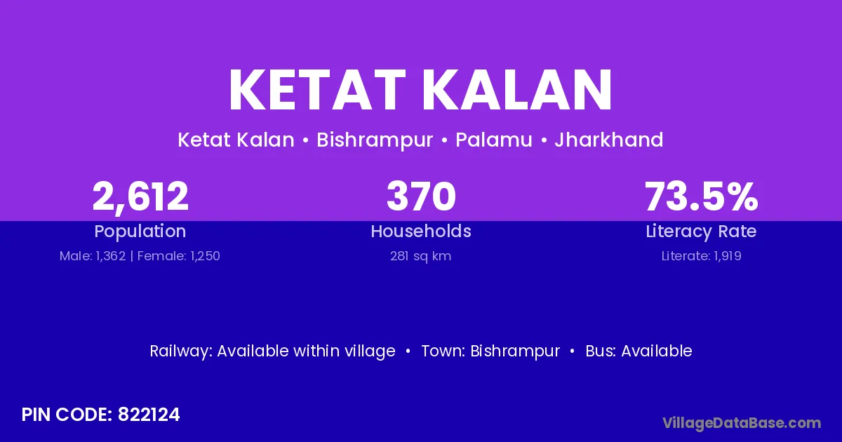 Ketat Kalan village has a total population of 2,612 people, of which 1,362 are males and 1,250 are females.