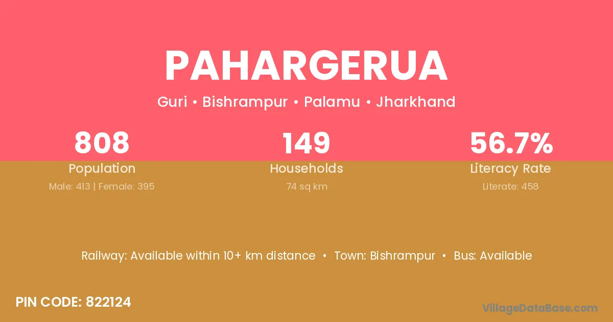 Pahargerua village has a total population of 808 people, of which 413 are males and 395 are females.
