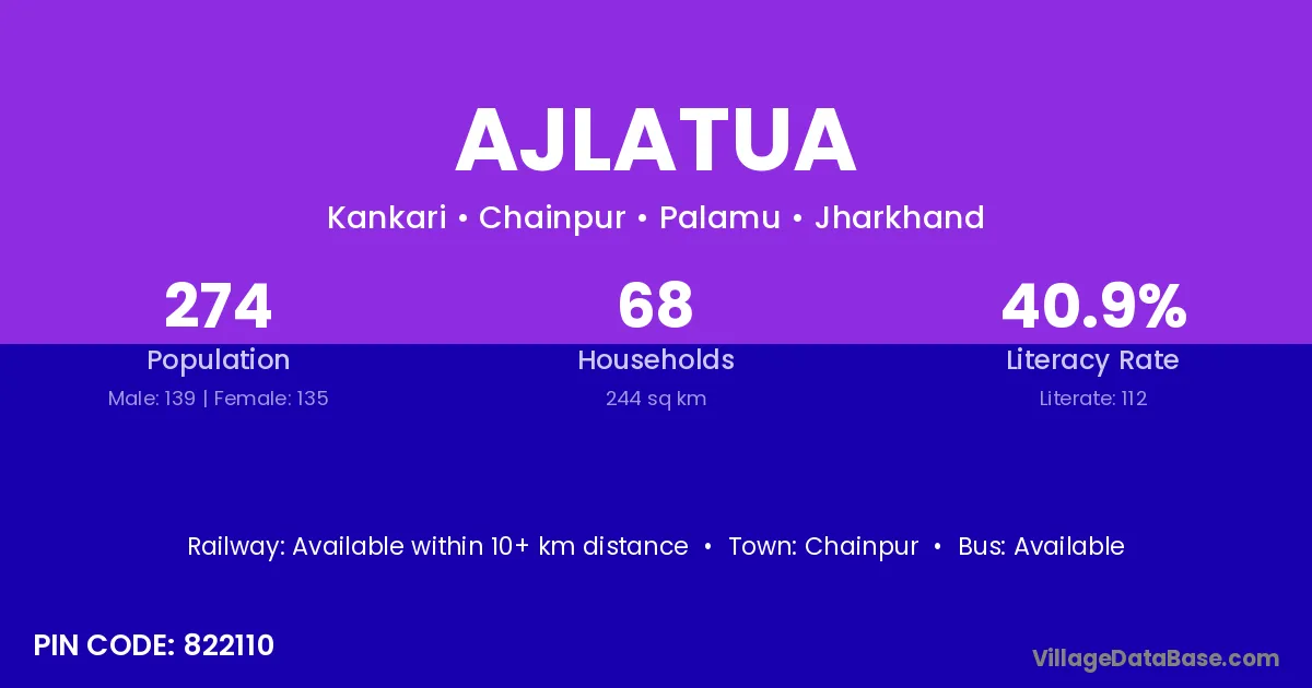 Ajlatua village has a total population of 274 people, of which 139 are males and 135 are females.