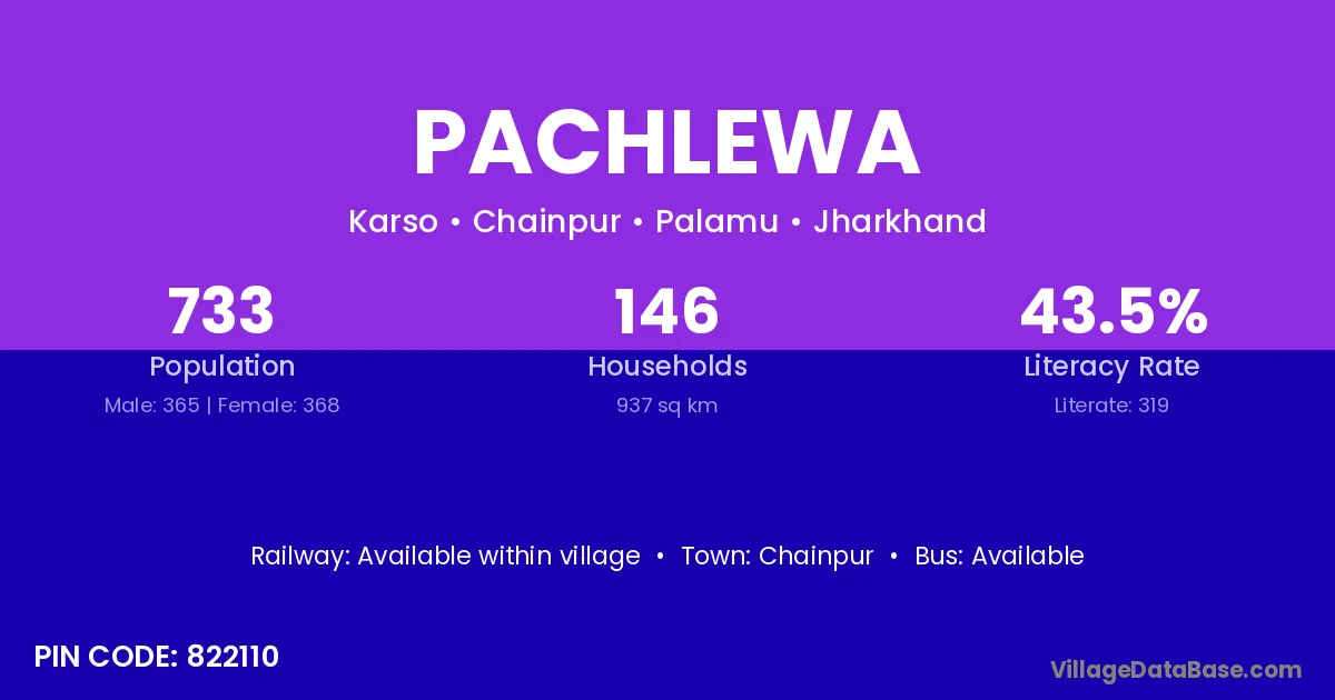 Pachlewa village has a total population of 733 people, of which 365 are males and 368 are females.