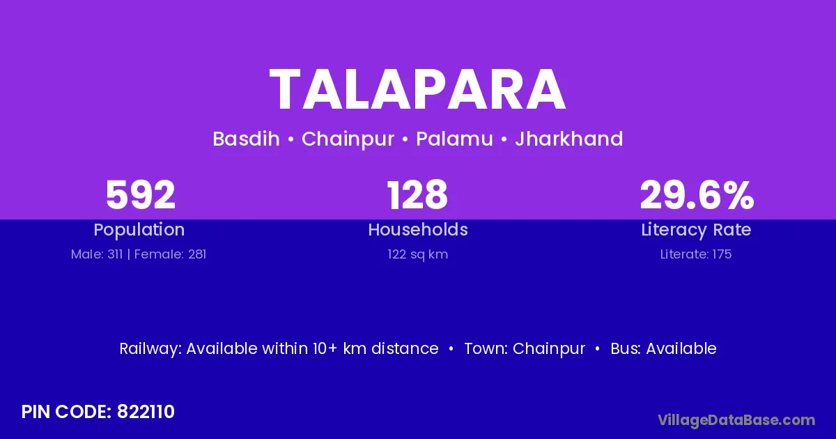 Talapara village has a total population of 592 people, of which 311 are males and 281 are females.