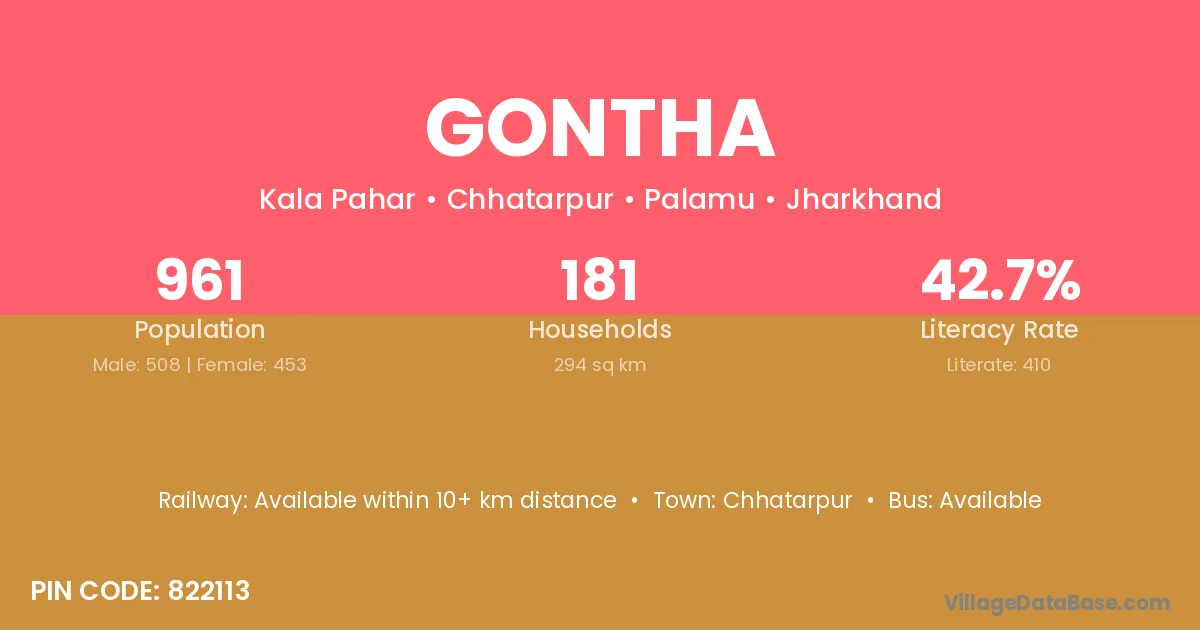 Gontha village is located in the Chhatarpur Subdivision of the Palamu district in Jharkhand .