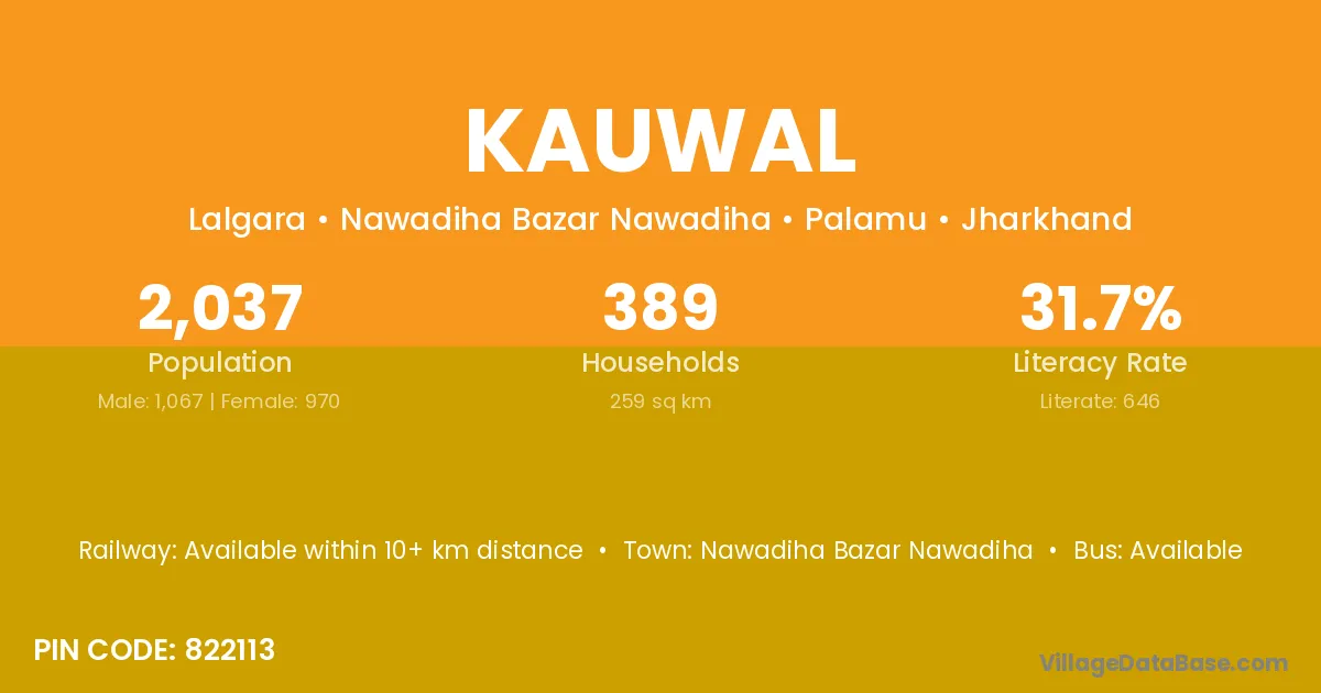 According to Census 2011 information, the village code of Kauwal village is 822113.
