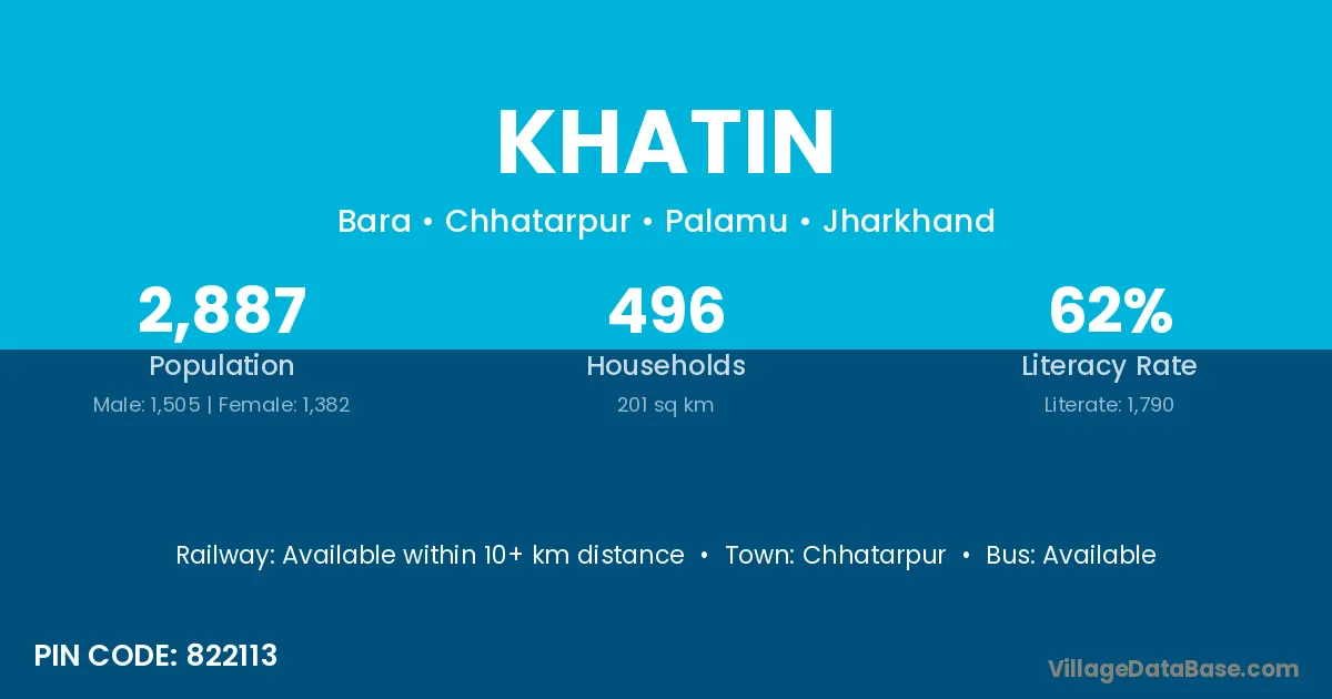 Khatin village has a total population of 2,887 people, of which 1,505 are males and 1,382 are females.