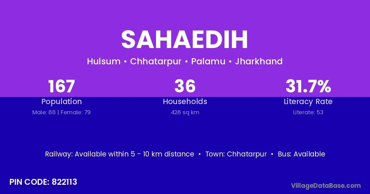 Sahaedih village is located in the Chhatarpur Subdivision of the Palamu district in Jharkhand .