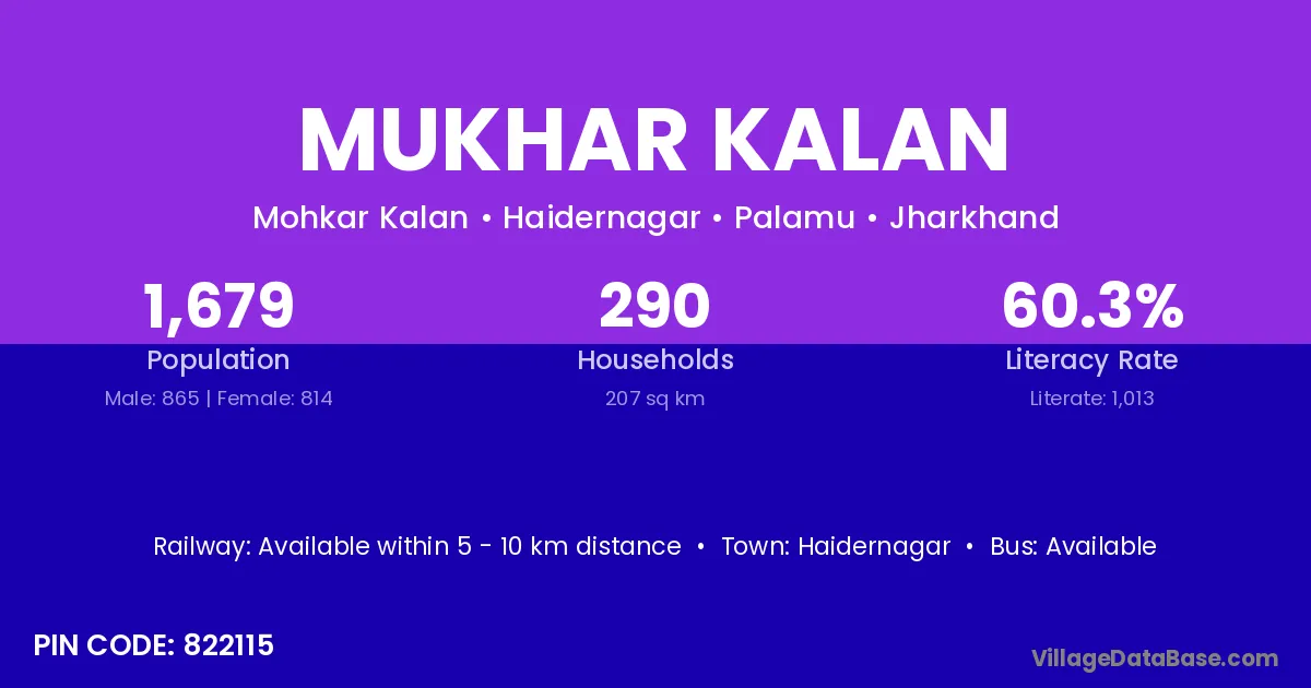 Mukhar Kalan village is located in the Haidernagar Subdivision of the Palamu district in Jharkhand .