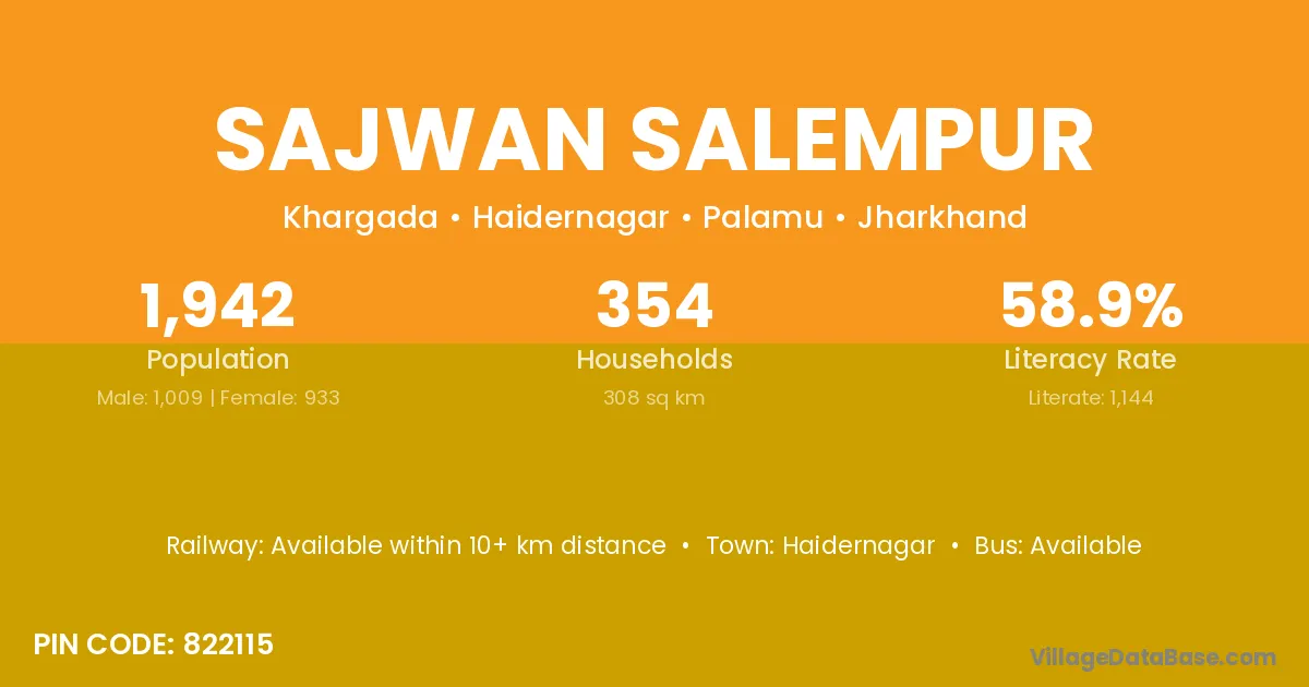 Sajwan Salempur village is located in the Haidernagar Subdivision of the Palamu district in Jharkhand .