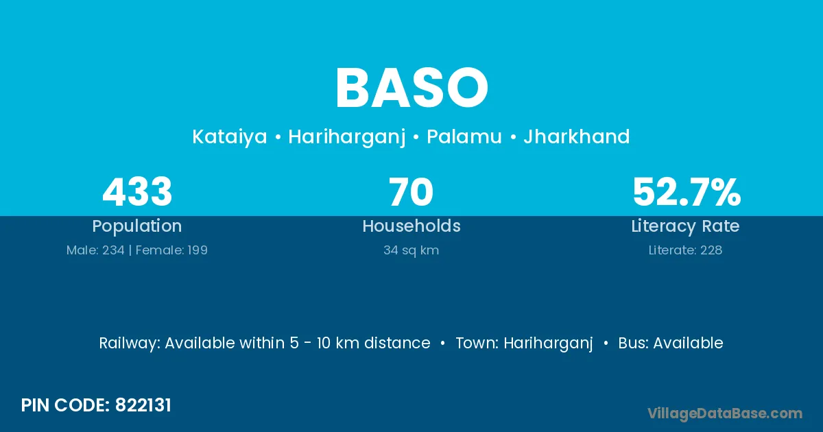 Baso village has a total population of 433 people, of which 234 are males and 199 are females.