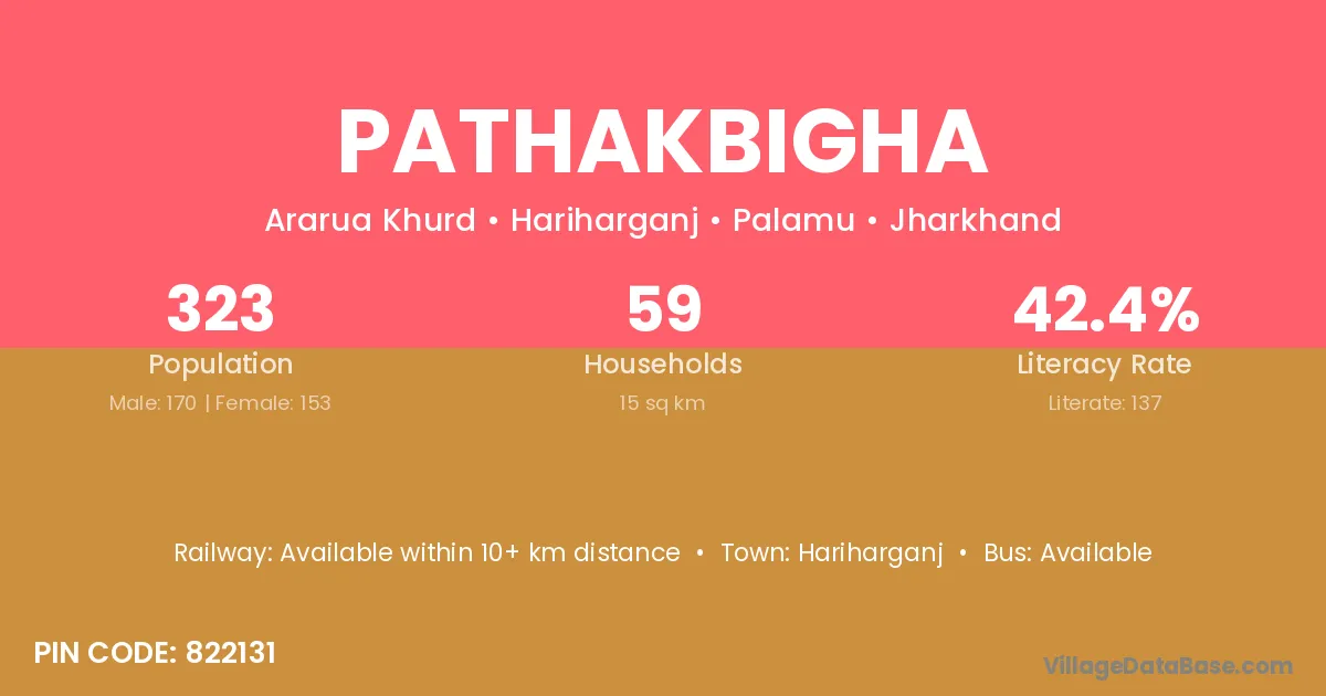 Pathakbigha village has a total population of 323 people, of which 170 are males and 153 are females.