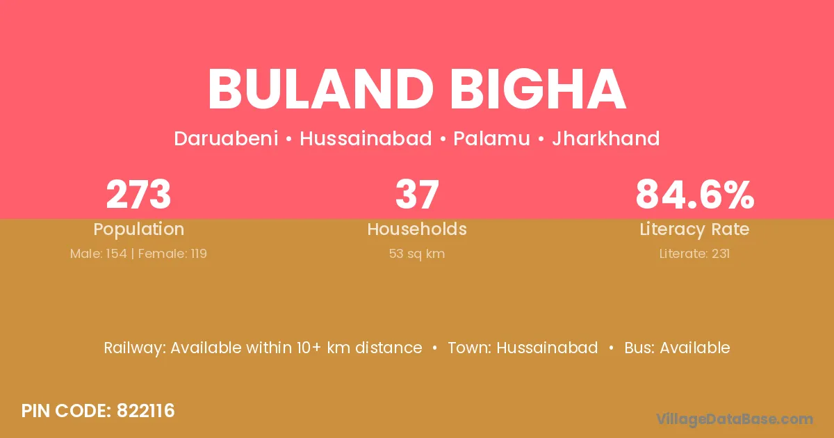Buland Bigha village has a total population of 273 people, of which 154 are males and 119 are females.