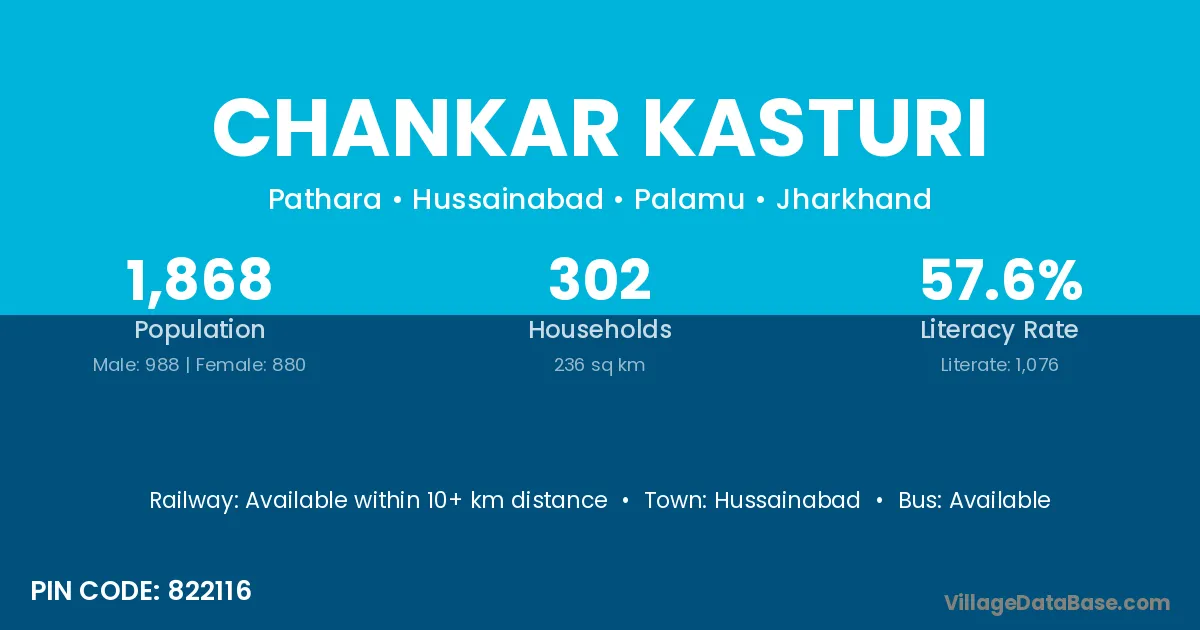 Chankar Kasturi village is located in the Hussainabad Subdivision of the Palamu district in Jharkhand .