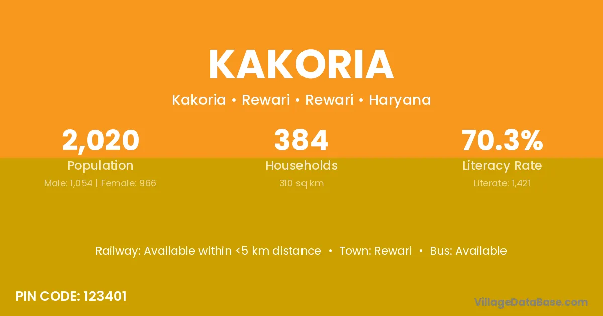 According to Census 2011 information, the village code of Kakoria village is 822116.