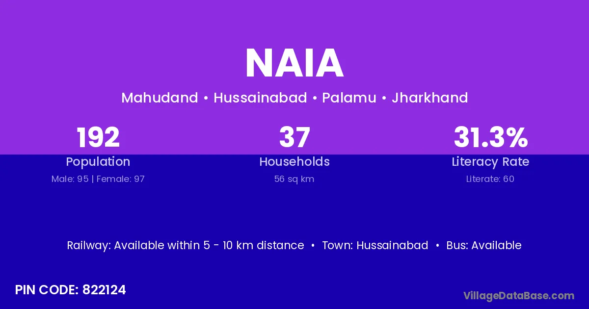 Naia village is located in the Hussainabad Subdivision of the Palamu district in Jharkhand .