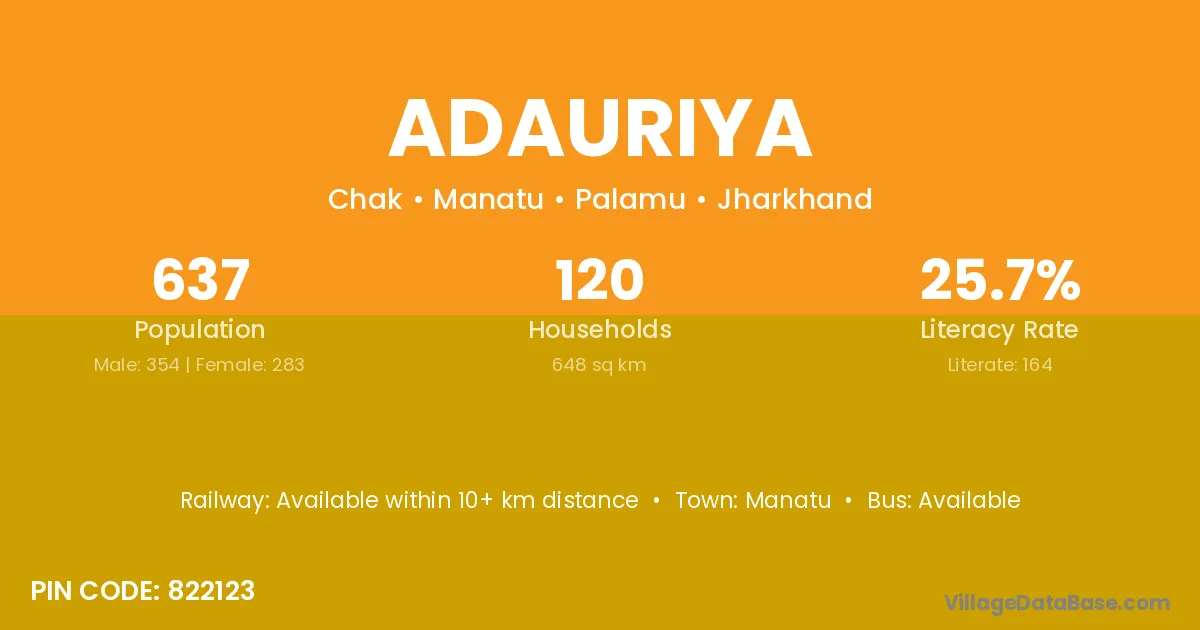 Adauriya village is located in the Manatu Subdivision of the Palamu district in Jharkhand .