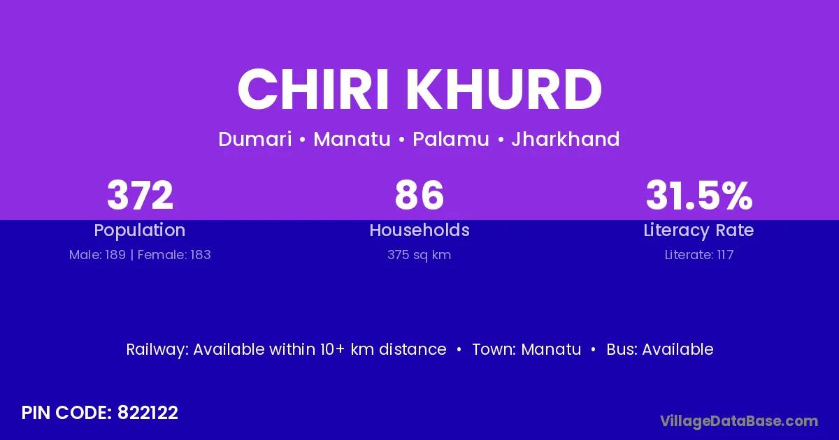 Chiri Khurd village is located in the Manatu Subdivision of the Palamu district in Jharkhand .