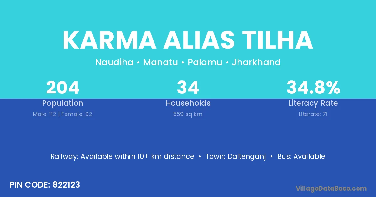 Daltenganj is the nearest town to Karma Alias Tilha village for major economic activities