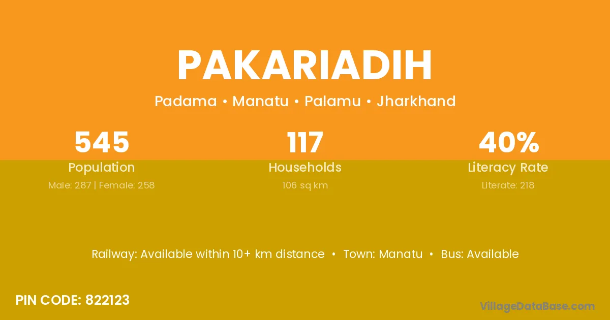 Pakariadih village has a total population of 545 people, of which 287 are males and 258 are females.