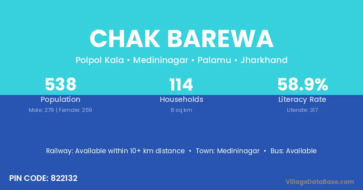 Chak Barewa village is located in the Medininagar Subdivision of the Palamu district in Jharkhand .