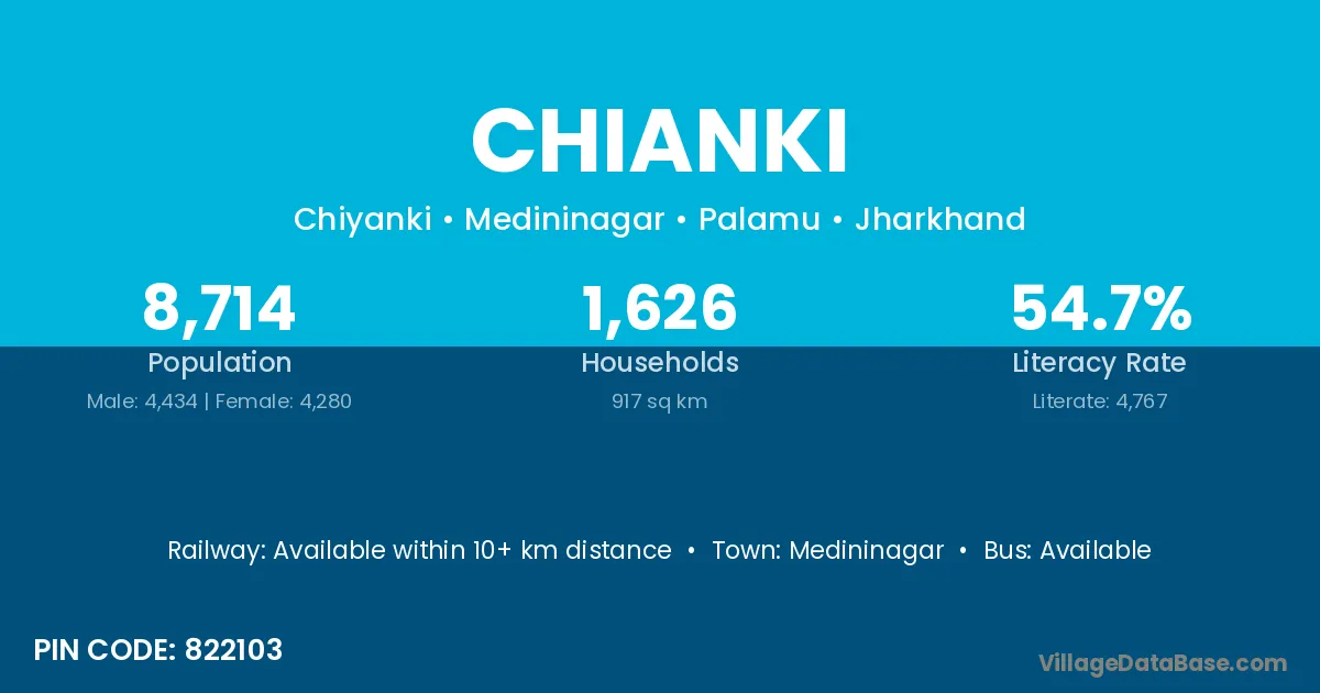 Medininagar is the nearest town to Chianki village for major economic activities