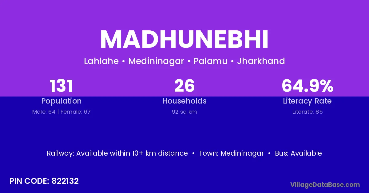 Medininagar is the nearest town to Madhunebhi village for major economic activities