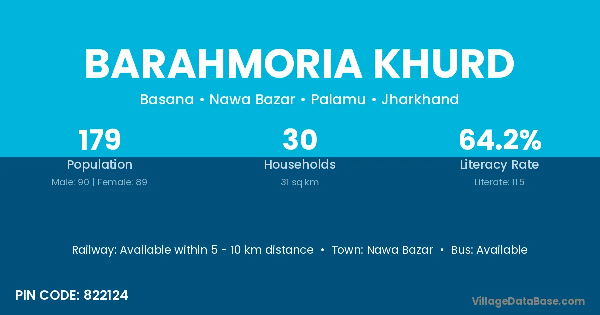 Barahmoria Khurd village has a total population of 179 people, of which 90 are males and 89 are females.