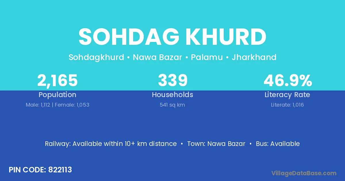Sohdag Khurd village has a total population of 2,165 people, of which 1,112 are males and 1,053 are females.