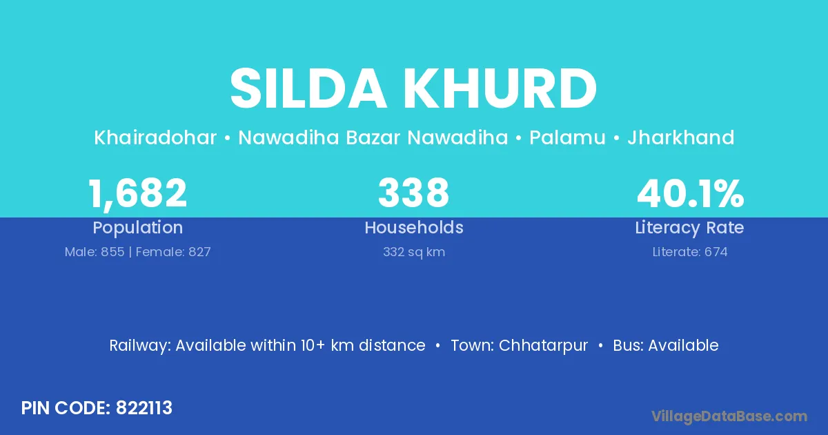 Silda Khurd village has a total population of 1,682 people, of which 855 are males and 827 are females.