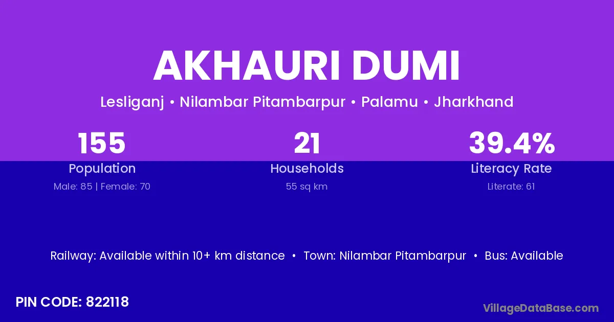 Nilambar Pitambarpur is the nearest town to Akhauri Dumi village for major economic activities