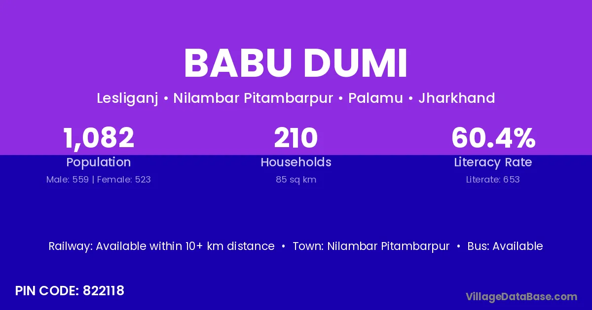 Babu Dumi village is located in the Nilambar Pitambarpur Subdivision of the Palamu district in Jharkhand .