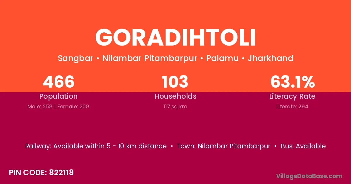 Goradihtoli village has a total population of 466 people, of which 258 are males and 208 are females.