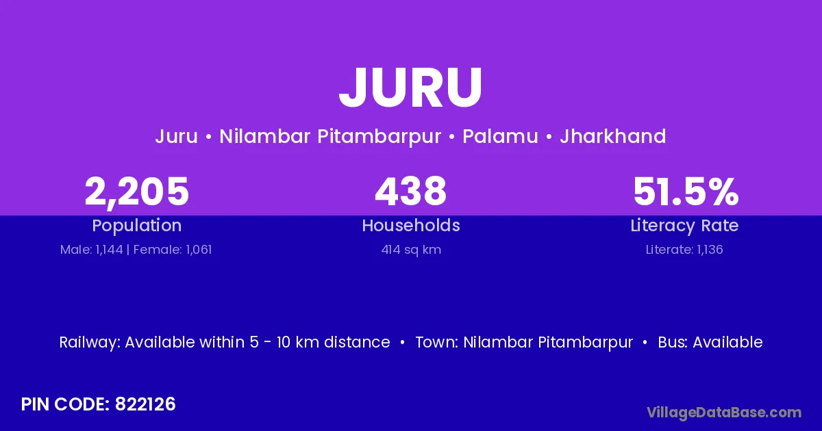 Nilambar Pitambarpur is the nearest town to Juru village for major economic activities