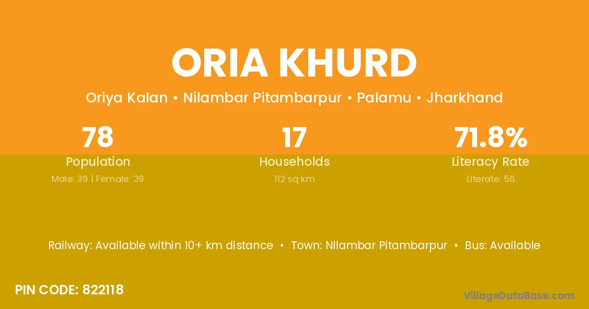 Oria Khurd village has a total population of 78 people, of which 39 are males and 39 are females.