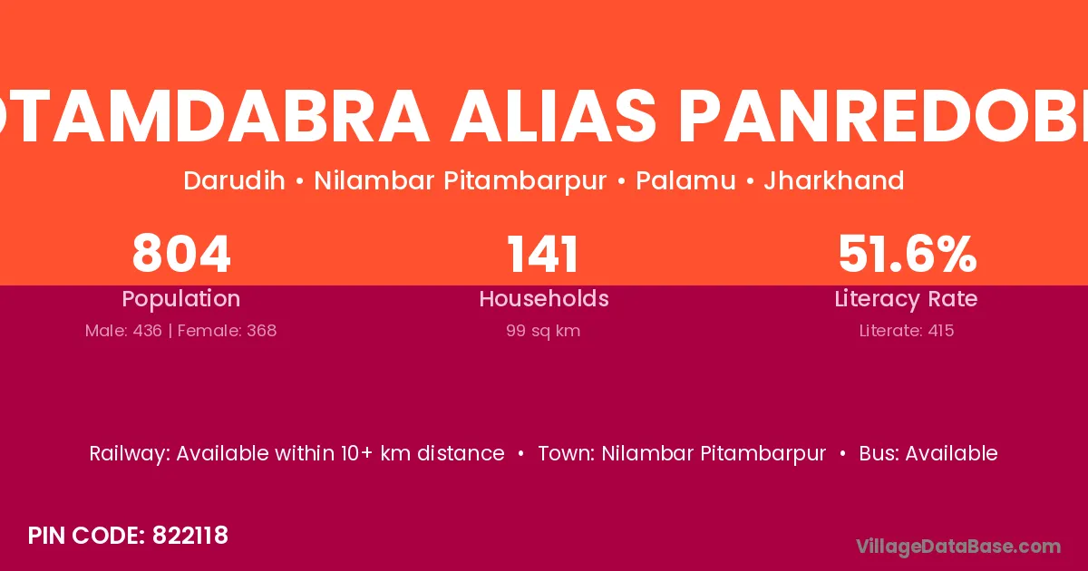 Sotamdabra Alias Panredobra village has a total population of 804 people, of which 436 are males and 368 are females.