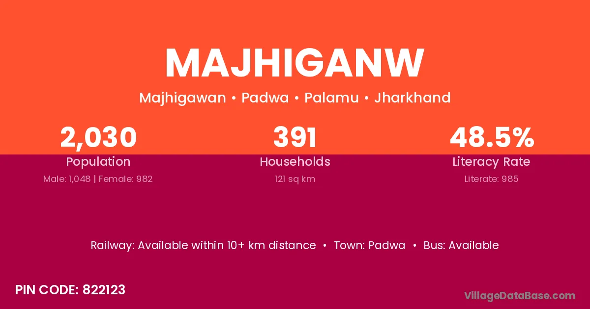 Majhiganw village has a total population of 2,030 people, of which 1,048 are males and 982 are females.