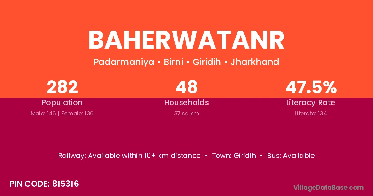 Baherwatanr village has a total population of 336 people, of which 174 are males and 162 are females.